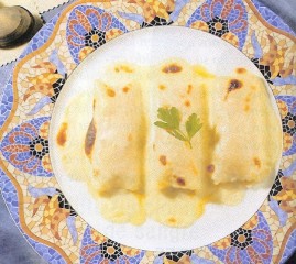 3. Rellena con la pasta y coloca los canelones en una fuente.