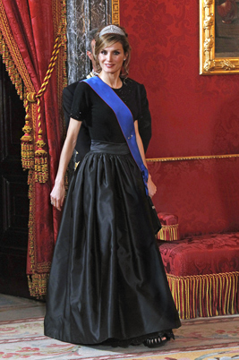 Doña Leticia se viste de gala nuevamente para la cena oficial con el presidente de Chile, Sebastián Piñera y su esposa. La sorpresa de la noche fue verla en un elegante vestido negro y con la tiara usada el día de su boda.