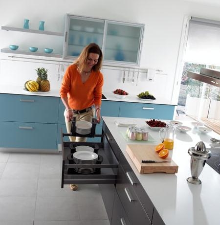 Lo más lógico es que los elementos usados para lo mismo estén juntos, sepáralos según sus funciones te facilitará la tarea de cocinar y también ahorrarás energías.