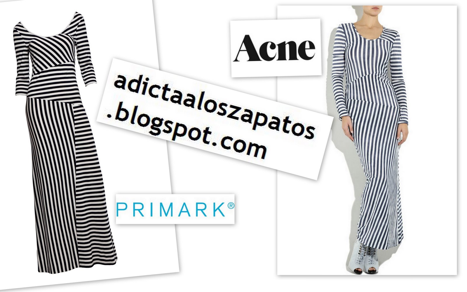 Y vestido largo de rayas blancas y negras muy parecido al de Acne de la foto que llevaba un tiempo intentando comprar por ebay a un precio razonable. Desde aquí les doy las gracias a los de Primark por acordarse de las compradoras españolas. En directo defrauda un poco pero no está nada mal....