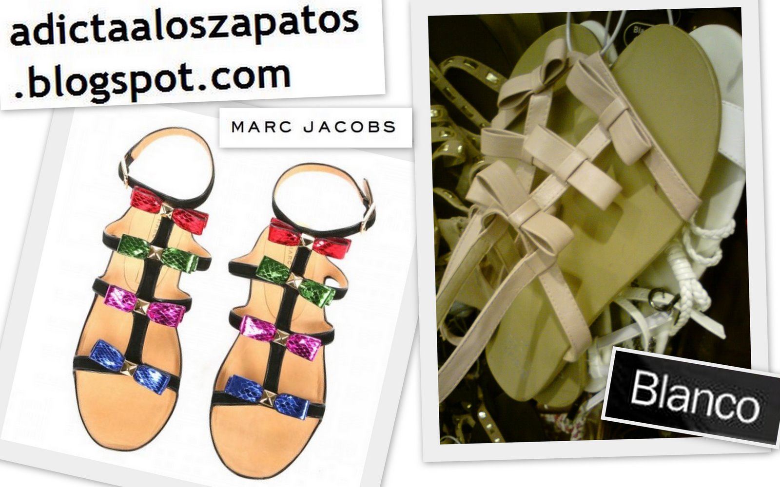 En Blanco encontré estas sandalias planitas muy curiosas de las hiperversionadas sandalias de Marc Jacobs... no están nada mal, no?